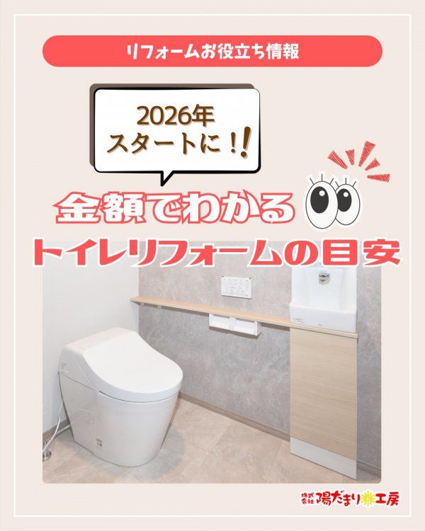 陽だまり工房では、相談だけでも大歓迎です。ご自宅によって金額の上下はございますが、2026年のスタートに快適なトイレ空間に変えてみていかがでしょうか。