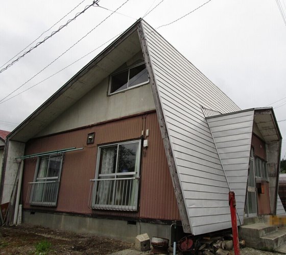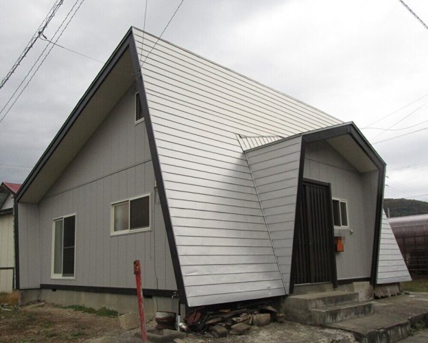 現地調査にお伺いした所、外壁材が鉄板トタン張りで、