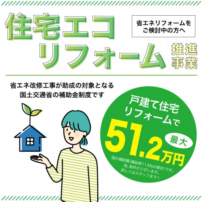 リフォームで活用できる補助金制度《住宅エコリフォーム推進事業》のご紹介