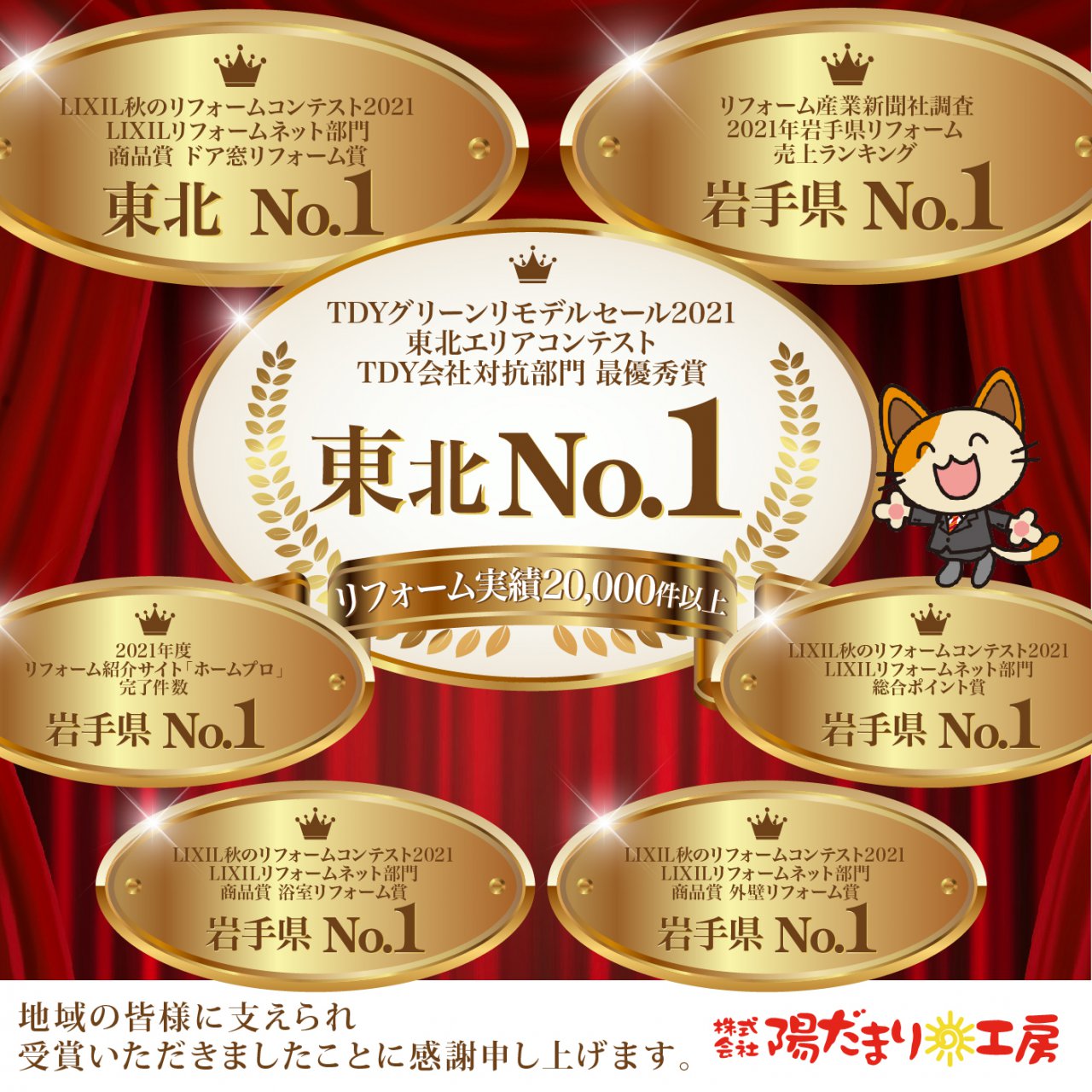 2021年度 東北ナンバー1・岩手県ナンバー1 受賞の御礼