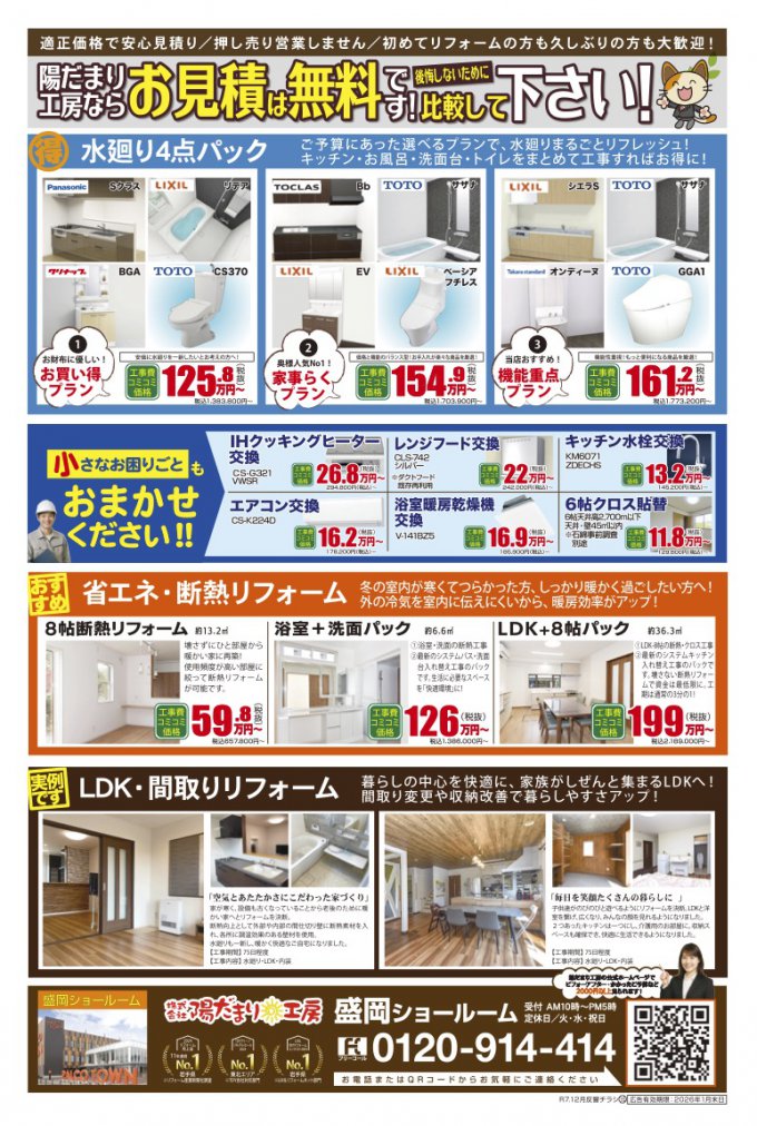 例えば、チラシ裏面では古くなったIHクッキングヒーターの交換やこれからの寒さ対策に欠かせないエアコンの交換など、今なら特別価格でご提供いたします。「どこに頼めばいいかわからない」「まずは相談だけしてみたい」そんな方も大歓迎です!その他にも、お客様のライフスタイルに合わせた最適なご提案をいたします。