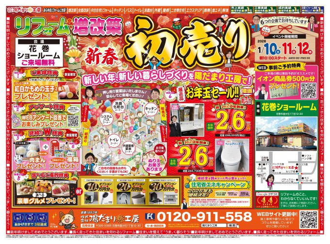 2026年1月10日(土)、11日(日)、12日(月・祝)の3日間にわたり陽だまり工房のリフォーム&増改築 新春初売りを開催いたします。