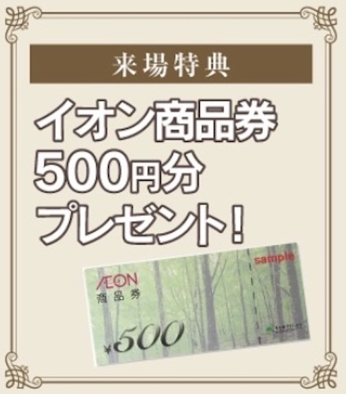 3日前までにご予約いただいた方には、イオン商品券500円分をプレゼント!便利なショッピングのお供にどうぞ。