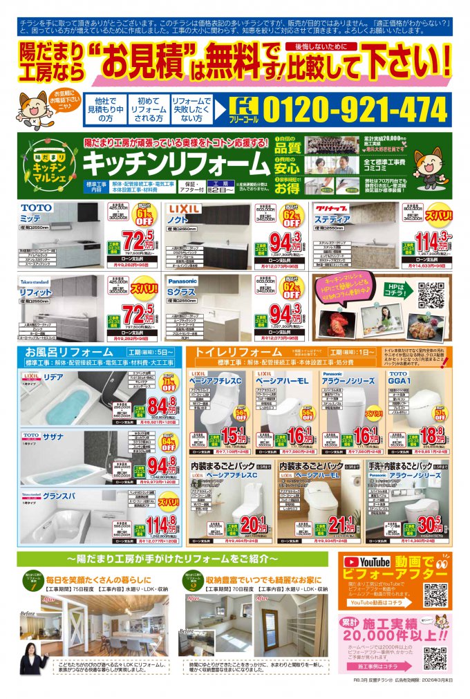 それぞれの企画の詳細や、取り扱いリフォームの価格等は折込チラシをご覧ください。