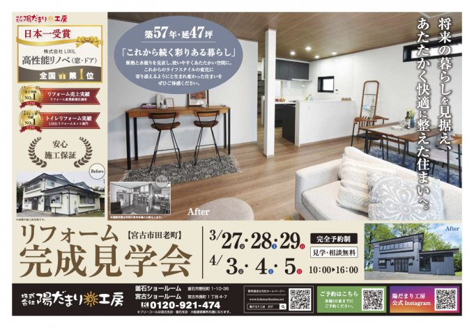 岩手県宮古市近郊にお住まいの方へ! リフォーム完成見学会のご案内です。