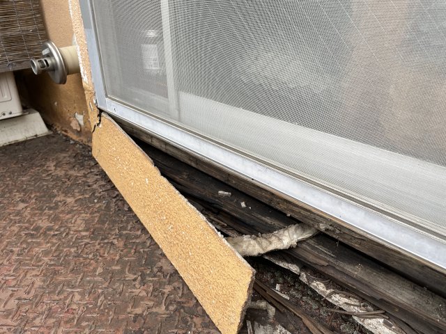 現地調査にお伺いした所、サッシ下の部分が古く、痛んでおり、