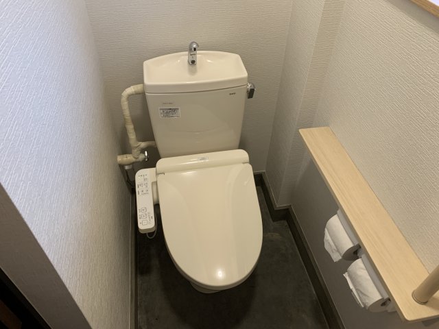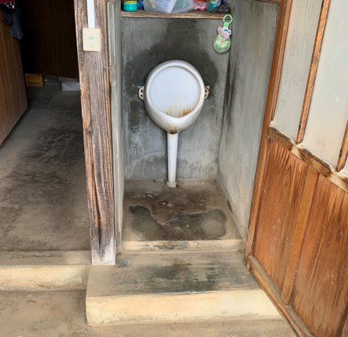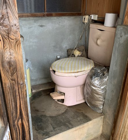 現地調査にお伺いした所、外にしかないトイレは段差が高く、