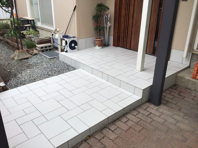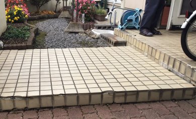 現地調査にお伺いした所、玄関タイルの部分が、崩れていました。
