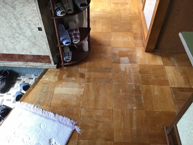 現地調査にお伺いした所、廊下の床の一部が沈んでいました。