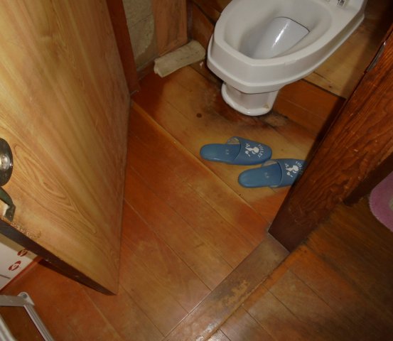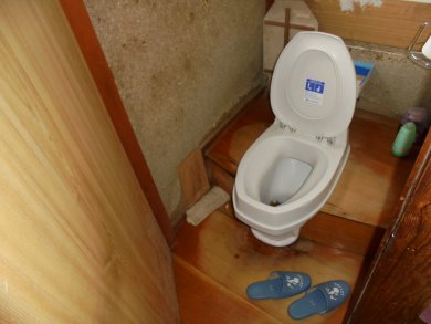 トイレも狭く、和式の便器に洋式の便座を乗せて