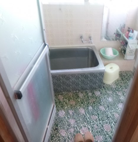 タイルのお風呂で寒そうでした。