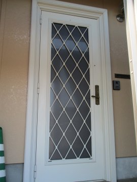 玄関ドアに関しましては、元々の玄関の部分に風除室を取り付けており、