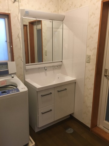 洗面台の脇の壁が傷んできてしまい、洗面台を交換して壁も直したい。と、思っていました。