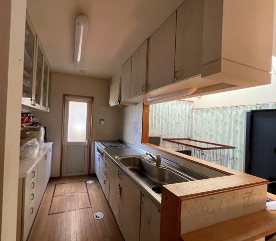 現地調査にお伺いした所、シンク横の物置スペースの部分が、
