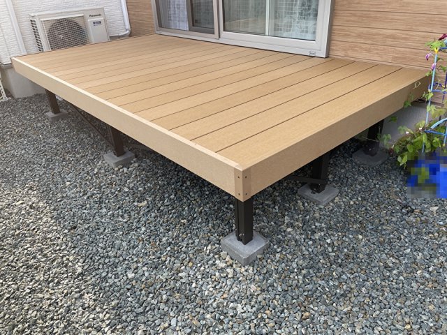 遊び場の確保のできるウッドデッキとスペースを利用した物干しを