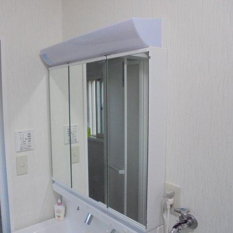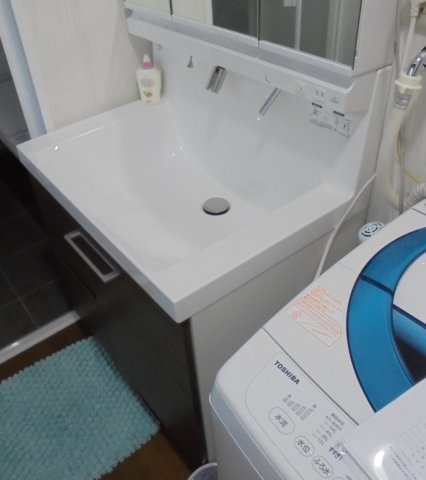 最初は撤去のみとし、浴室工事完了後に新しい化粧台を設置しました。