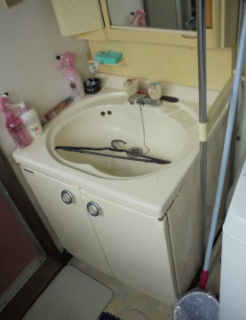 小さく古い洗面化粧台がお悩みでした。