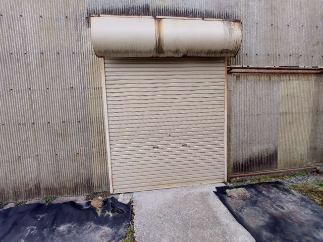 現地調査にお伺いしたところ、倉庫のシャッターは経年劣化して錆びている状態でした。