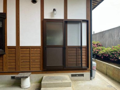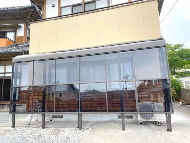 勝手口に風除室を設置することで雨の侵入を無くし、雨でも洗濯物を慌てて取り込まなくても良いようにテラス設置をご提案致しました。