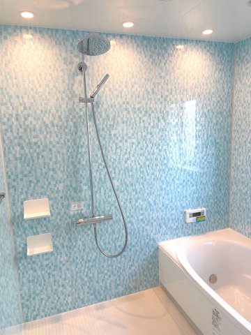 現地調査にお伺いした所、きれいな状態でしたが浴槽が水色に変色しており、この古い感じをなくしたいとのことでした。