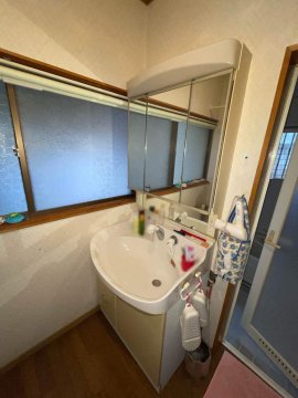 K様のご要望は、洗面化粧台の交換で、既存の形状と似た洗面化粧台をご提案させていただきました。