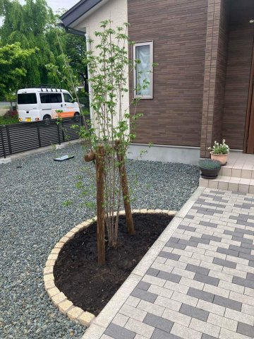 A様には玄関前に植栽を植えて、目隠しと庭造りのご提案をさせていただきました。