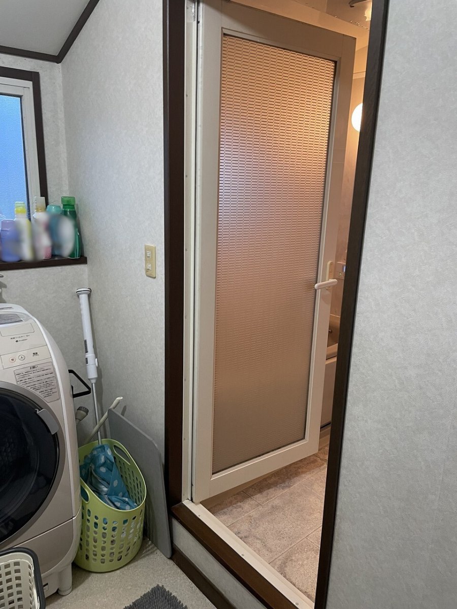 UB交換をすることで脱衣室とUBの床の段差がなくなり、ドアの吊元も反対になることで出入りしやくなりました。