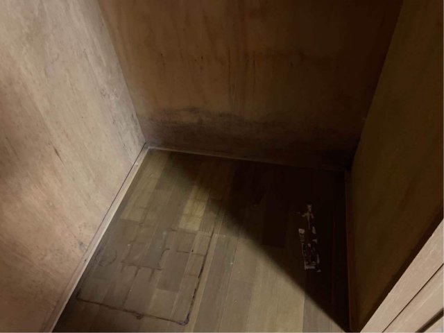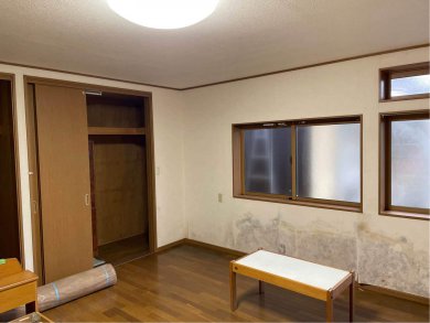 元々、倉庫の部分を部屋にした作りで、ブロック基礎内にボードを貼った施工状況だったため、外部の湿気が、内部まで浸透してカビが発生したようでした。