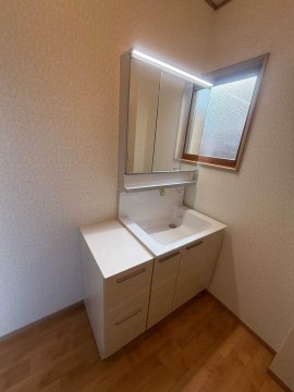 工事後の感想で、「お手入れも簡単で時短になり、ついつい長風呂になるほどいい空間になりました。洗面化粧台もきれいになり良かったです。」