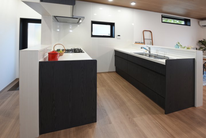キッチンをL型から二列型へ、位置も変更し新しくパントリーを作り、窓をなくし、既存窓の交換もすべて行い、