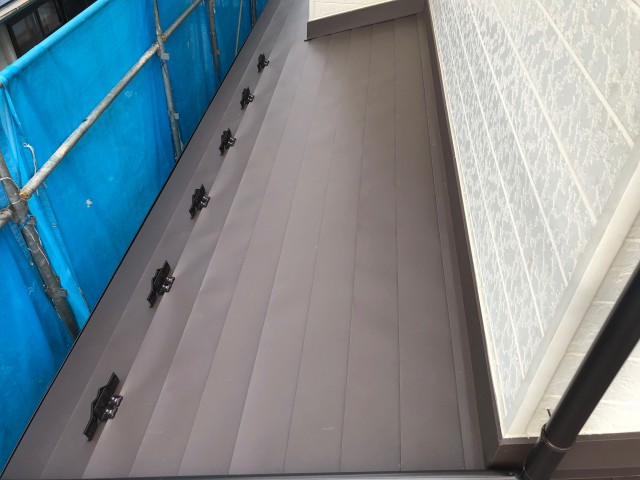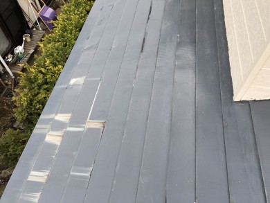 現地調査にお伺いした所、屋根のトタンの部分の塗装が剥げ、