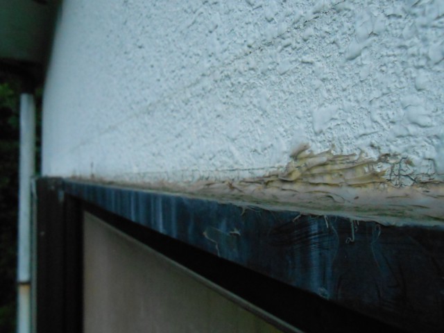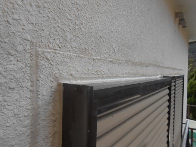 外部から目視にて外壁に亀裂とサッシ廻りのコーキングに亀裂を確認しました。