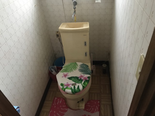 現地調査にお伺いした所、簡易水洗便器本体の部分が古くなっていました。 I様のご要望は、水洗化とトイレ内の改装で、