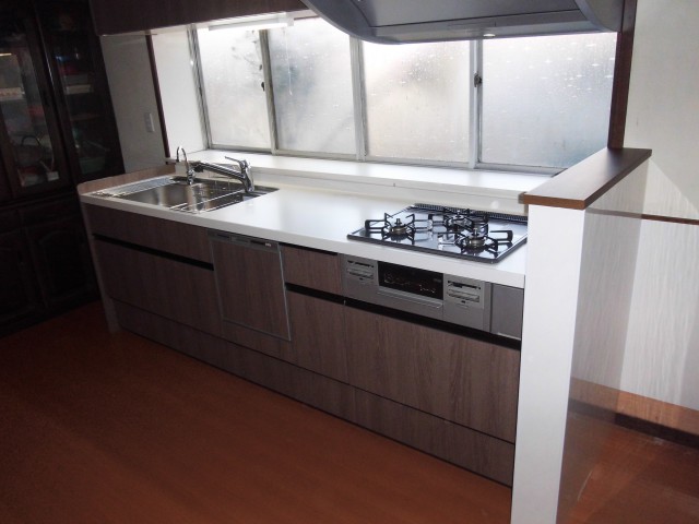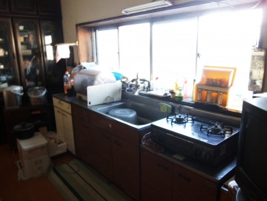 現地調査にお伺いした所、台所の流し台の部分が古くて汚くなっていました。 T様のご要望は、システムキッチンにする事で、