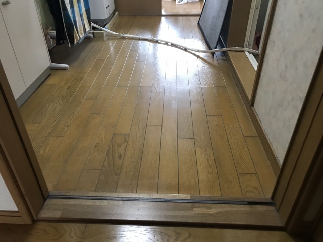 床の木下地はしっかりしていたので重ね張り工法を提案し、