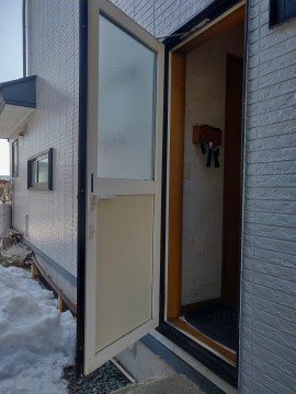 ご自宅の勝手口ドアが強風で壊れてしまった事が、お悩みでした。