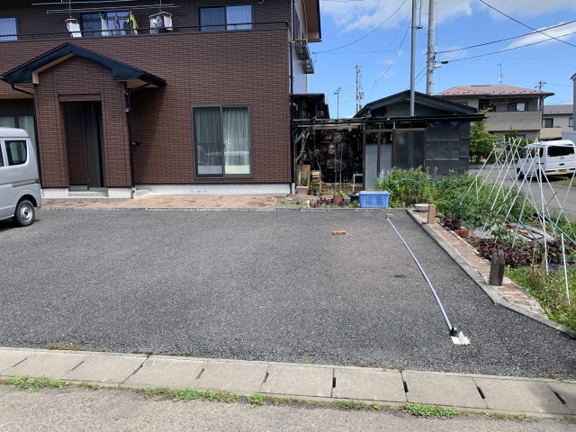 駐車場はアスファルト舗装で敷地内には菜園も作られておりました。