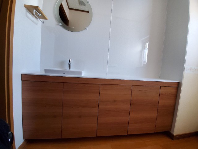 ドレッサーを囲うようにキッチンパネルを施工することで、