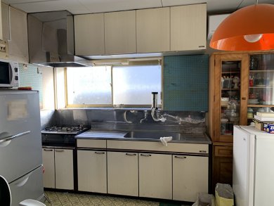 現地調査にお伺いした所、下の収納が扉タイプのキッチンを