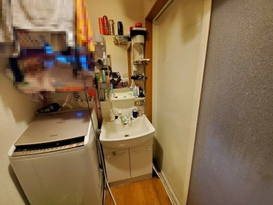 洗面脱衣室は、1日で床の張替えと洗面台交換をしました。