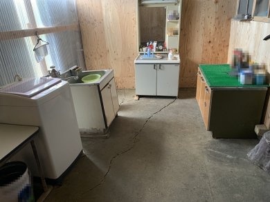 居間の床が沈んで不安なことと、下屋に置いてある洗濯機が