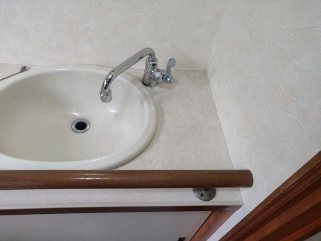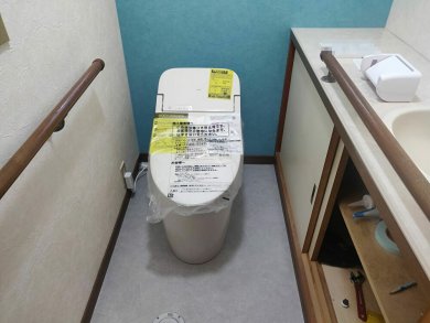 工事中は、トイレ交換と一緒に手洗いの部分の補修も行いました。