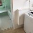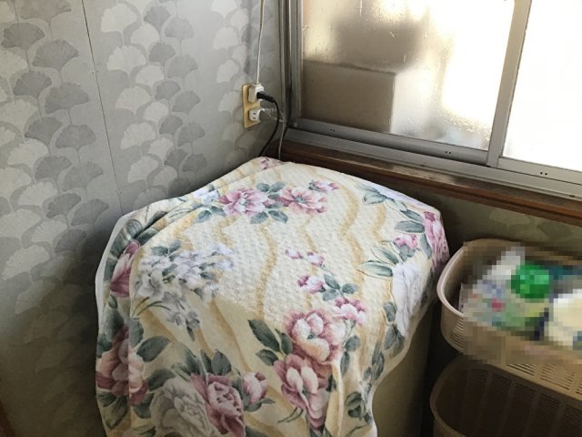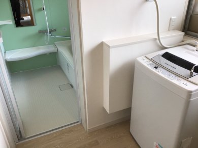 床がタイルで段差が有り、洗濯機も置いてある状況でした。