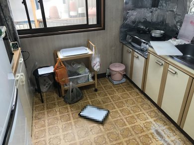 現地調査にお伺いした所、台所の壁・天井の汚れが目立っていました。