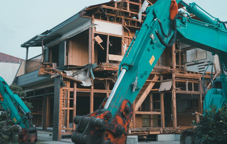 最初に植栽類や外壁を撤去し重機を入れスムーズに作業を行えました。