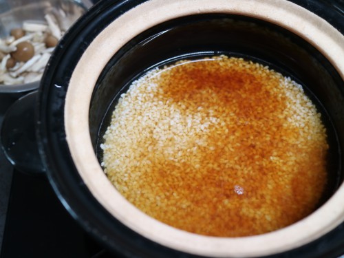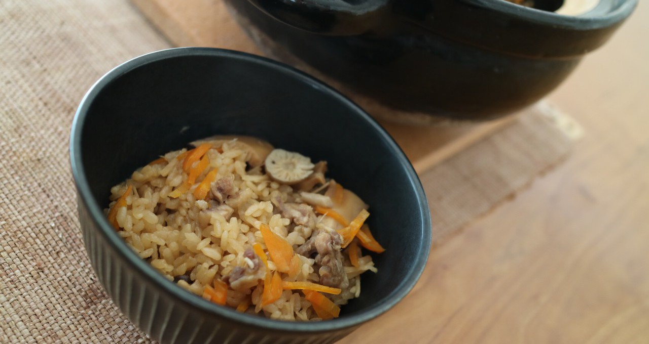 ※炊飯専用土鍋、長谷園のかまどさんでよく炊き込みごはんをします。その場合は浸水20分、12分強火で加熱、20分蒸らすと完成!!そのまま食卓に出しても映えますよ。