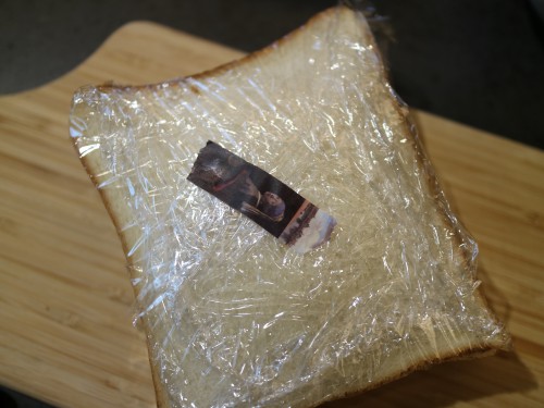 ③冷蔵庫で2時間冷やし、落ち着いたらマスキングテープを貼った方と反対側に向けてラップのまま包丁で切ったら完成。