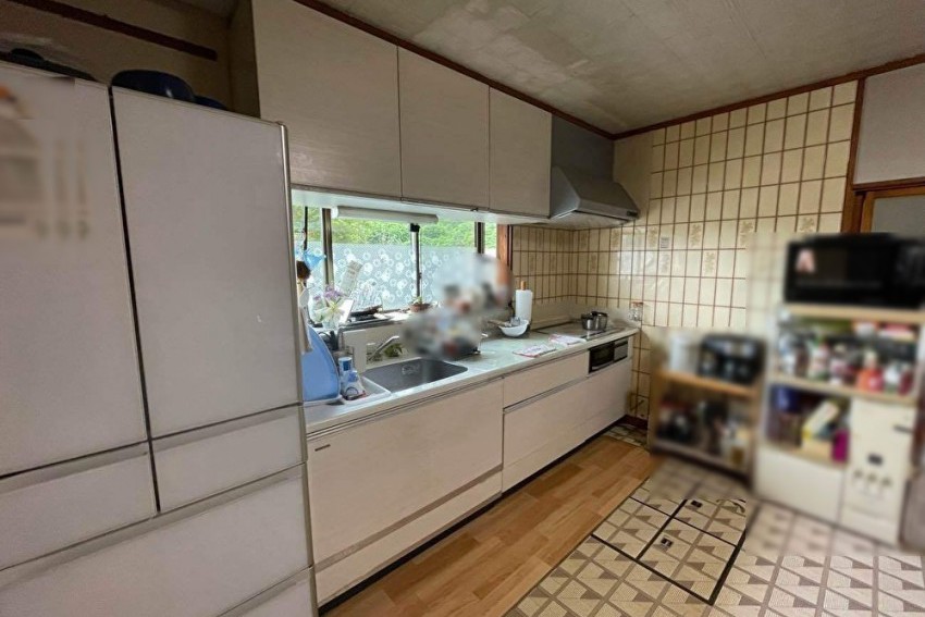 現地調査にお伺いしたところ、キッチンの扉が部分的に閉まらない所があり、キッチンの底の色も変わっていました。