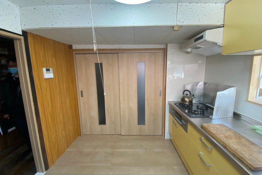 入口の建具も変えて、キッチンが明るくなりました。