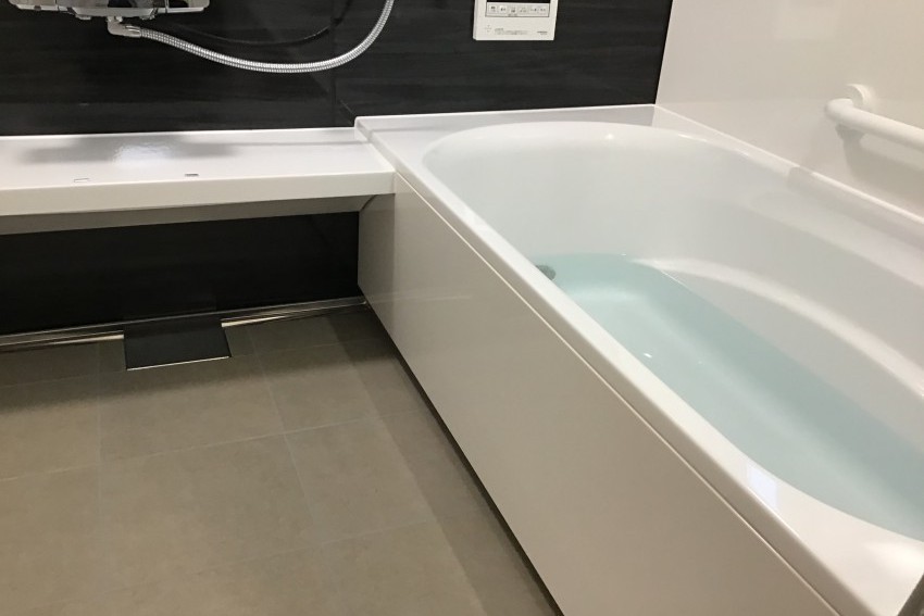 2階にあった浴室を、1階に付けたいとのことでしたので、断熱性が高い最新のシステムバスをご提案いたしました。お手入れも簡単です。